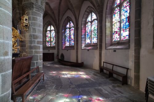Naše cesta začala v přístavu Port de Dahouët, odkud jsme se vydali po stezce GR34 směrem k promenádě. Na kopci nad přístavem stojí Oratorium Notre-Dame de la Garde, postavené v roce 1864 na památku mnoha obětí lovu tresky na Islandu. Uvnitř se nachází socha Panny Marie Strážné (nahrazená v roce 1960). Oratorium má rozměry 4 × 4 metry a výšku 6 až 7 metrů. Tento skromný pamětní monument je součástí náboženské pobřežní architektury města a představuje symbol námořních eposů Dahouëtu.